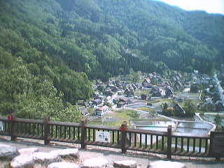 | ちょっと登ったところに展望台のようなところがあり、ここから合掌村群を 見下ろすことができる。近くで見るより却って良いかも知れない。穴場かも。 |