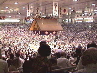 昨今、相撲界も不況なさなか、今日はしっかり、満員御礼の垂れ幕が下がっておりました。